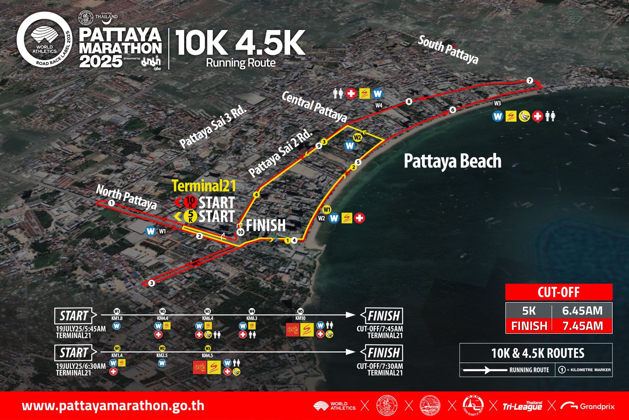 每年芭堤雅馬拉松賽事期間,芭堤雅就會脫去慵懶的度假style,為一年一度的馬拉松賽事備戰!!!凌晨3點,整個海岸線都沸騰了,隨著上萬名選手集結到位,絢爛的煙花綻放的瞬間,選手們完全是沐浴在涼爽的海風,聽著陣陣海浪聲奔跑,賽道的每一個補給點,志工們都忙得不亦樂乎,不僅激情滿滿的為運動員加油打氣,還要眼明手快的給運動員做冰水、運動飲料、各類水果的補給。緊接著,天空開始轉為明亮,海上的彩霞漫天,芭達雅甦醒了!選手們也陸續歸來,大家擊掌慶賀歡樂無比!!! 來吧~2026年度泰國芭達雅馬拉松於07月19日(暫定)開幕,給自己一次機會,盡情的享受人生的各種挑戰吧!