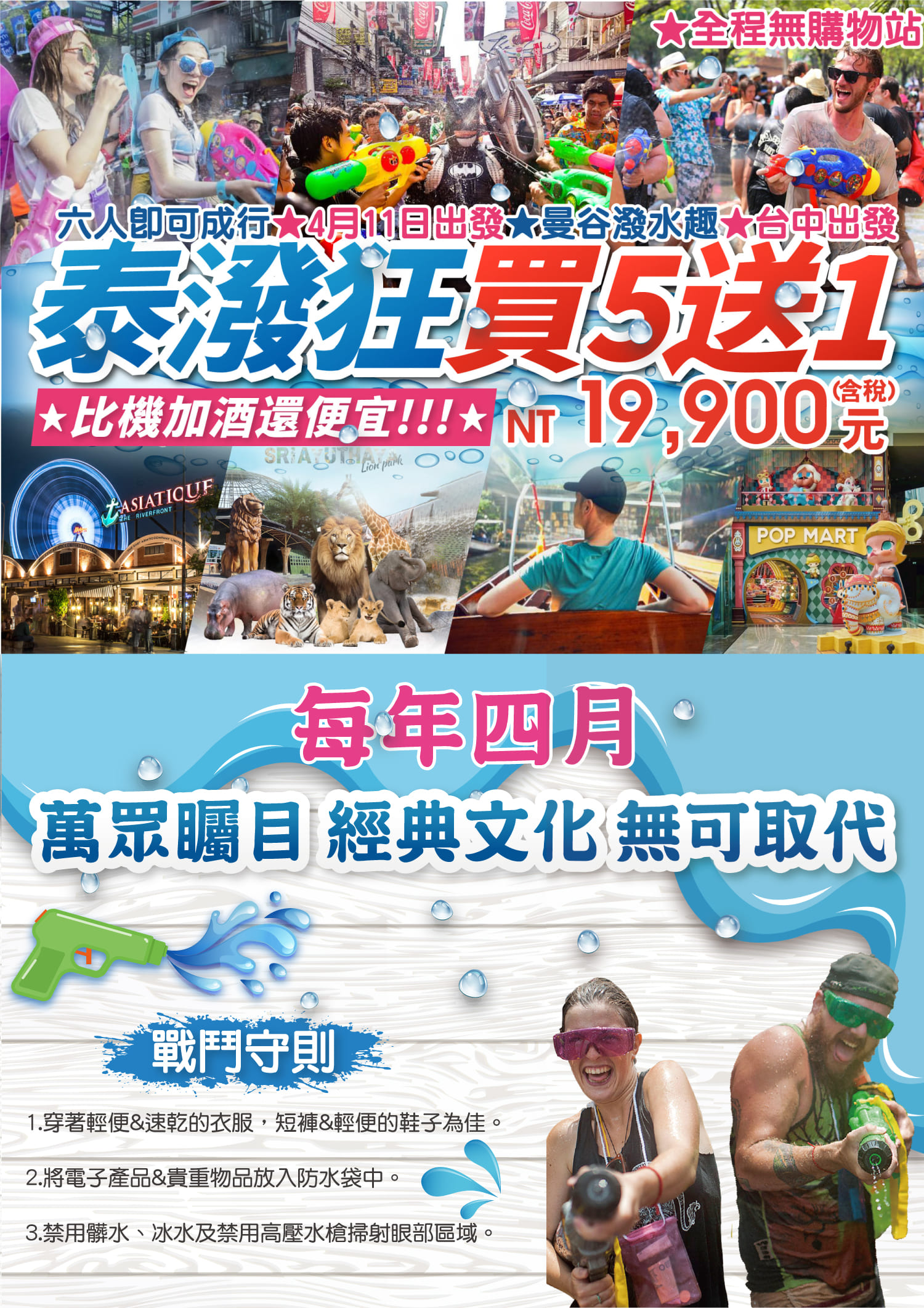 【6人成行!比機加酒還便宜】泰潑狂買5送1!曼谷潑水趣5日~泰國版築地海鮮市場.泡泡馬特地標店.河畔碼頭市集.四面佛祈福