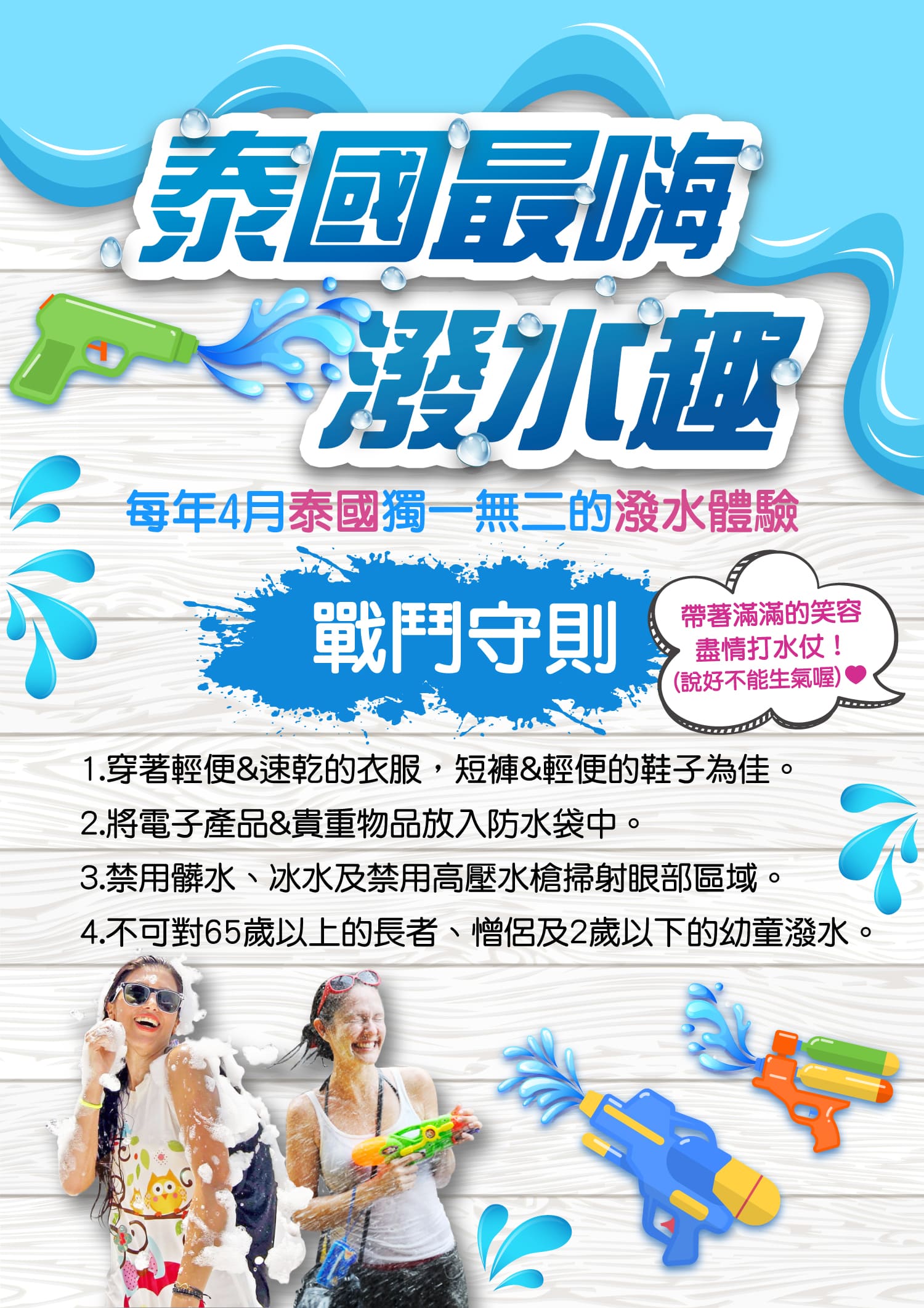 *最重要的帶著滿滿的笑容盡情打水仗(說好不能生氣喔!)