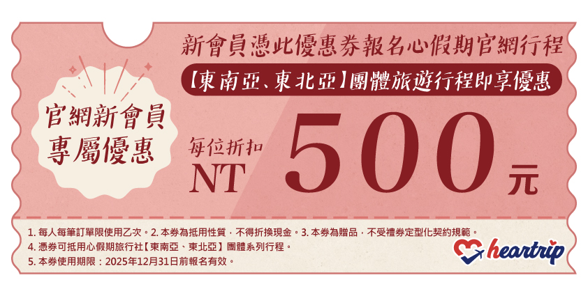 5-1:本行程包含旅行業責任保險【意外死殘保額新臺幣500萬、意外醫療保額新臺幣20萬(實支實付)】及旅行社履約保證保險。