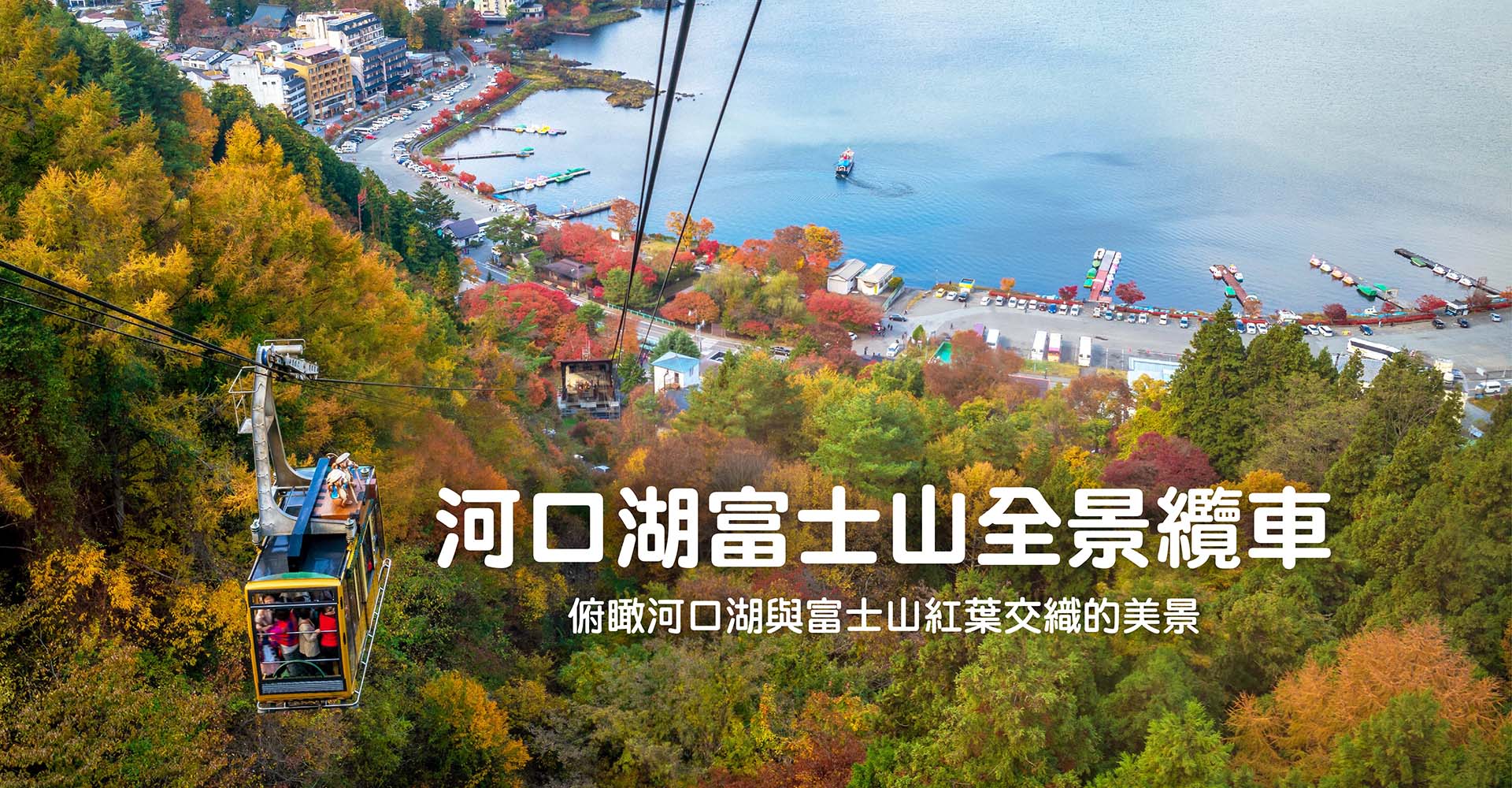 富士山全景纜車是欣賞河口湖紅葉的最佳景點之一,纜車可將您帶到天上山公園,在三分鐘的車程中,您可以從高處俯瞰河口湖、富士山與紅葉交織的美景。最佳觀賞時間約在11月下旬至12月中旬,此時纜車穿梭在染紅的楓葉林間,景色非常壯觀。