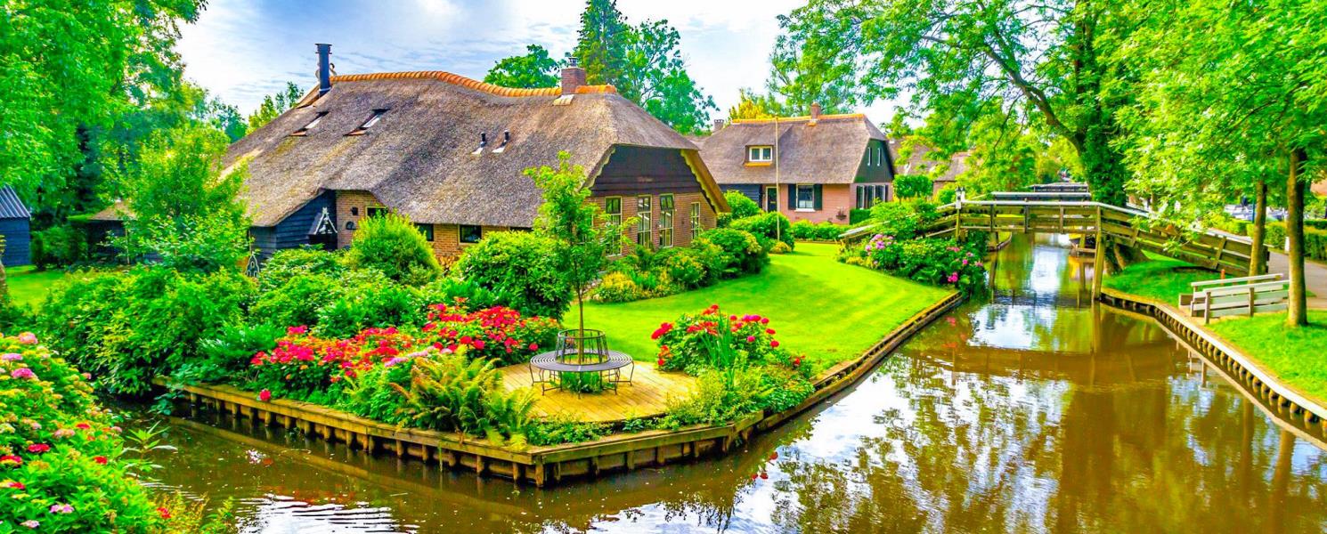 以「綠色威尼斯」般波光粼粼映射出一幢幢別墅倒影,屋頂由蘆葦編成比多數建材耐用且冬暖夏涼、防雨耐曬。乘坐平底木船穿梭寧謐的村落是體驗羊角村的最佳方式,聆聽歷史並享受如童話般的美景,小橋流水人家也在此別有一番洋味。