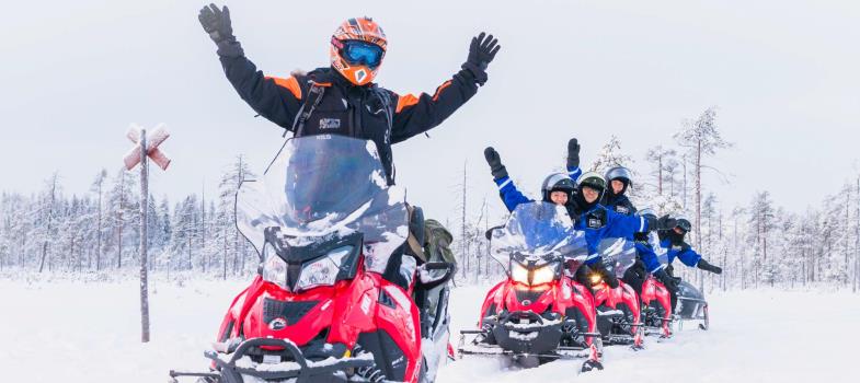 引擎轟鳴聲劃破寂靜,疾馳於一望無際的雪原與銀白森林之間,寒風掠過臉頰卻讓人興奮不已。四周景色如夢似幻,白雪覆蓋的樹梢在陽光或極光下閃閃發亮。那份自由與速度交織的快感,讓人彷彿融入了北極的壯闊之中,既刺激又難忘。