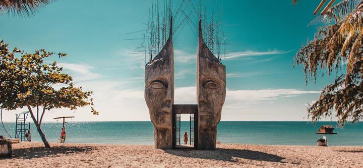 被喻為富國島最獨特的海灘,更是網路上瘋傳的打卡聖地,也是可以欣賞富國最美麗日落的地方之一。當夕陽慢慢落下,投射在無邊無際的海洋上,沙灘上的奇妙裝置藝術作品似乎與夕陽和海洋相互融合,使人感到仿佛置身於另一個世界。