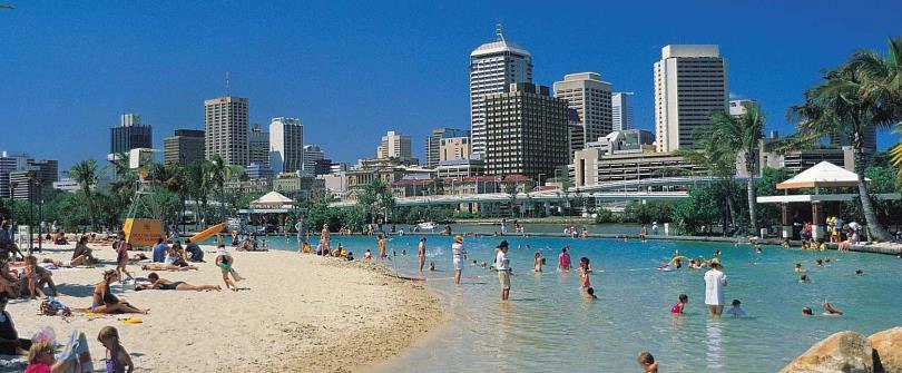 南岸公園為一處人造公園也是1988年世界博覽會的地點,融合了自然景觀與人文設施,擁有雨林步道、草地廣場、水景設施,以及多樣的餐飲與娛樂選擇。其中最具特色的是「街道海灘」,這是澳洲唯一位於市中心的人造沙灘與潟湖。