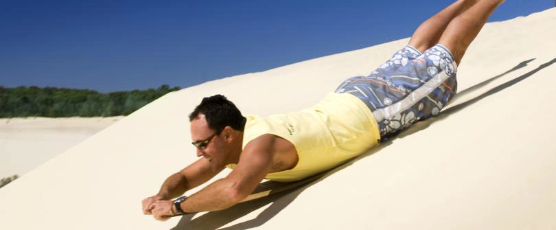 搭乘四驅沙地巴士,沿途穿越自然景觀,直駛沙漠邊緣,深入探索沙島的心臟地帶。抵達後,可以步行進入壯觀的沙丘區,欣賞沙漠風光,還可體驗島上最受歡迎的滑沙活動,俯衝速度可達每小時40公里,保證讓人驚叫連連、樂趣無窮!