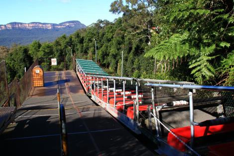 南半球最陡的空中纜車,傾斜角度達36度,能夠搭載84名乘客,可橫越山脈河谷的上方,遠望三姊妹岩、迴音谷,並可欣賞斷崖上的Katoomba瀑布等壯麗景觀。透過玻璃艙可輕鬆欣賞藍山全景。提供從雨林底部到懸崖頂部的壯觀旅程。