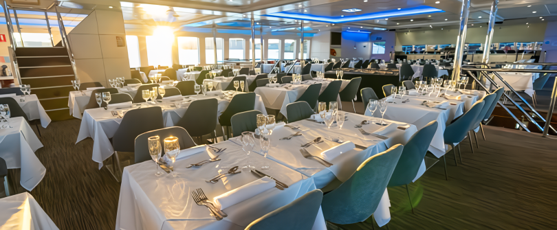 雪梨塔頂的旋轉餐廳位於82樓,餐廳環繞整圈緩慢旋轉,一餐時間即可欣賞雪梨港、歌劇院、海港大橋的全景。緩慢旋轉的360度觀景、豐富菜色與當地食材融合為一體,讓人邊用餐就能環覽整個悉尼市景,兼具視覺與味覺的特別體驗。