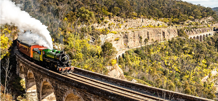 藍山蒸汽火車是新南威爾斯州著名的鐵道體驗,列車穿越壯麗峽谷與砂岩高架橋,重現 19 世紀浪漫情懷。經典的之字形軌道設計,透過前進與掉頭克服陡峭坡度,並與台灣阿里山森林鐵路締結為姐妹鐵道,加強台澳國際文化交流。