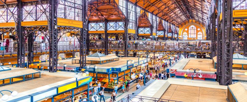 達佩斯最大且最古老的中央市場竣工於1897年,共有三層。0層和一層主要銷售食品,各種生鮮食材,以及乾果和香料。二層則銷售手工藝品,並有一些當地風味餐廳。鵝肝醬、紅椒粉、貴腐酒,在這一定能夠買到心儀的伴手禮!