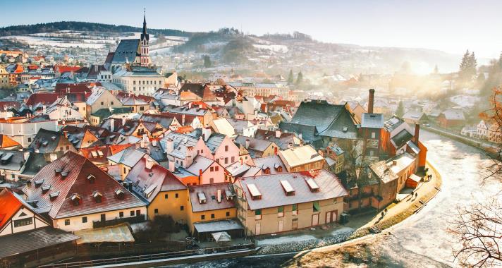 13世紀時由於地處重要的貿易通道上而逐漸繁盛,大部分建築建於14世紀到17世紀之間,多為哥特式和巴洛克式風格。小鎮被流經該處的馬蹄鐵形的伏爾塔瓦河環抱著,而著名的城堡則建在河的對岸,其建築、街道、教堂、要塞風采依然。