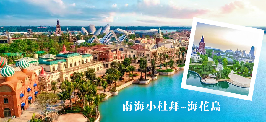 【新時代渡假區-海花島(下車參觀)】作為一個集旅遊度假、娛樂休閒、酒店餐飲等28大業態於一體的文化旅遊勝地,海花島可以滿足全年齡層遊客的需求。你可以在五國溫泉城裡泡溫泉放鬆身心,帶孩子們去童世界海洋樂園大開眼界。白天,不妨陪著家人去珍奇特色植物園打卡,晚上可以帶孩子欣賞震撼的燈光秀。總之,一上島就開啟度假模式,每個業態都能帶給你無限驚喜。海花島國際旅遊度假區由三座人工島如花瓣般綻放於湛藍的海洋中。這裡融合了奢華度假與自然美景,擁有一流的海景酒店、環球美食、主題樂園及購物天堂,是放鬆身心的理想之地。