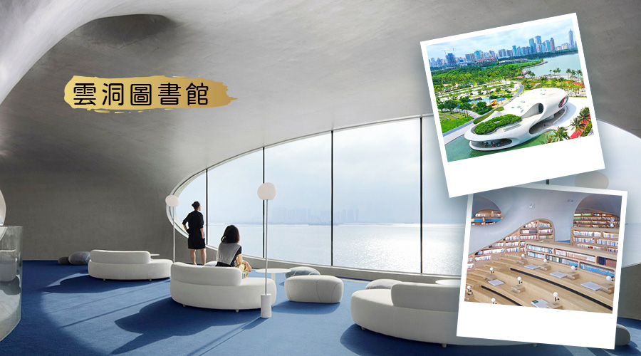 【網紅打卡熱點~雲洞圖書館(下車參觀)】雲洞圖書館是海口最新的網紅打卡熱點,也是目前熱門的旅遊景點,整棟建築運用一體成形的混凝土打造出這座宛如蟲洞般的有機建築,彷彿是多維的時空隧道,連接了城市與海岸、現實與想像。不只如此,為了回應現代人的需求,圖書館融入大量新意的建築技藝及環境永續等元素,以提升更多元化的功能,打造更完美的文化體驗。圖書館分為兩個部分,包含較大的閱讀空間如圖書區、咖啡廳和屋頂露台,另外還有連結公園使用的自行車停靠區、飲水區、公廁和淋浴間。整體採用混凝土材質建成,流動的曲線貫穿整個量體,讓天花板、牆面和地板就像是一體成形的大型雕塑。圖書館最吸睛的設計之處還是其具多個孔洞如蟲洞般的外觀,它就像圖書館的呼吸孔,讓建築看起來好像一個有機的生命體。你既可以一面看書,一面看海景;一邊感受月光沐浴,一邊享受海風徐徐,完全與大自然融為一體。