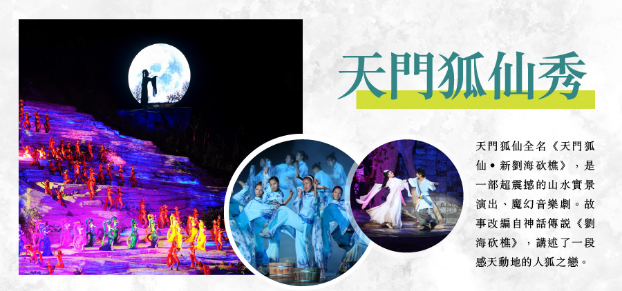 ※天門狐仙秀屬於室外舞台演出,預計演出至12月8日將會休演至隔年3月,如休演將改欣賞精彩的魅力湘西秀,敬請旅客見諒。
